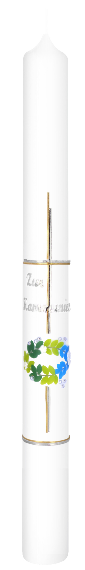 Die individuelle, handveredelte Kommunionkerze wird personalisiert mit Namen und/oder Datum der Kommunion.
