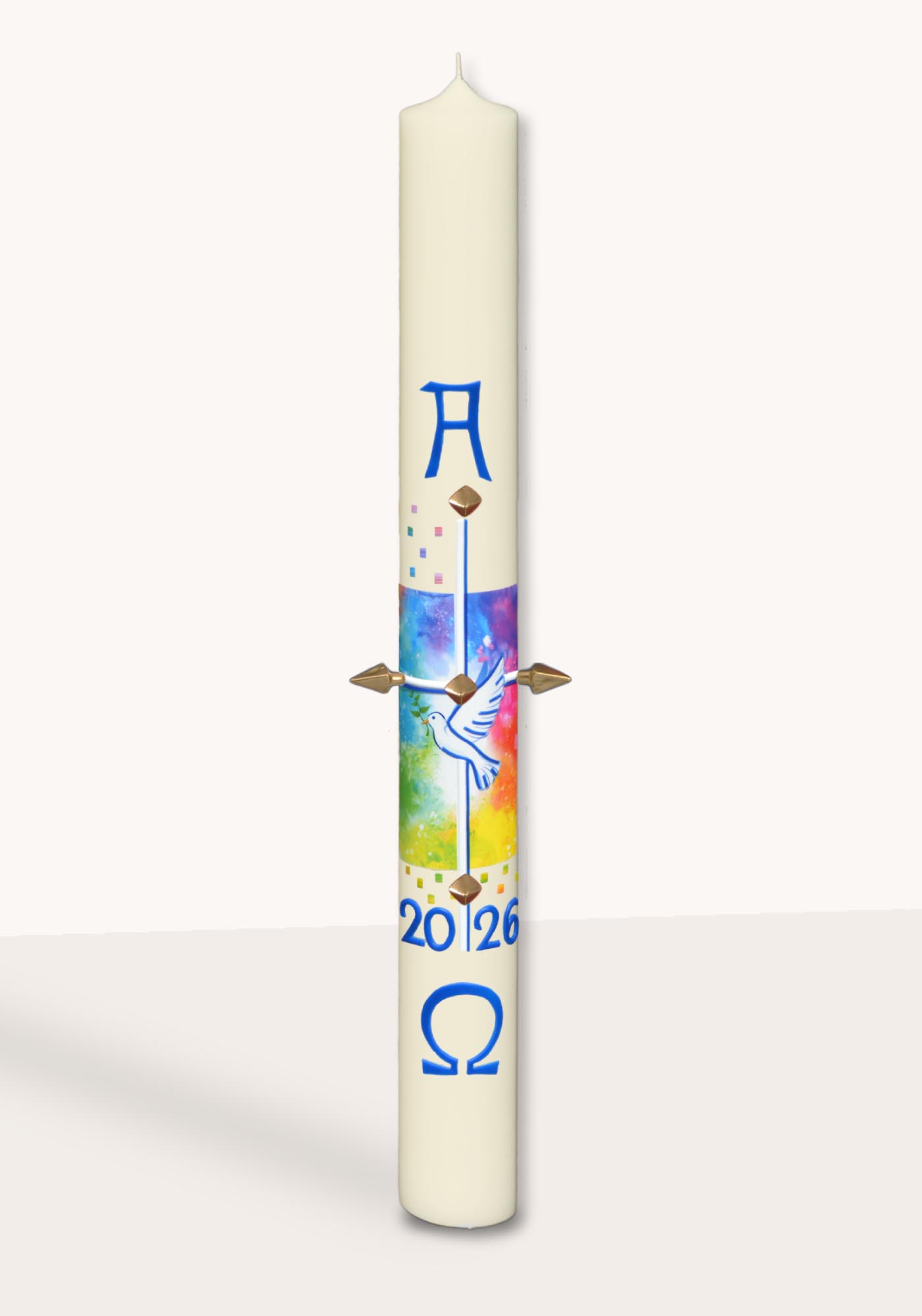 Osterkerze 10 % BW. - Dekor 3539 Friedenstaube auf himmlichen Hintergrund