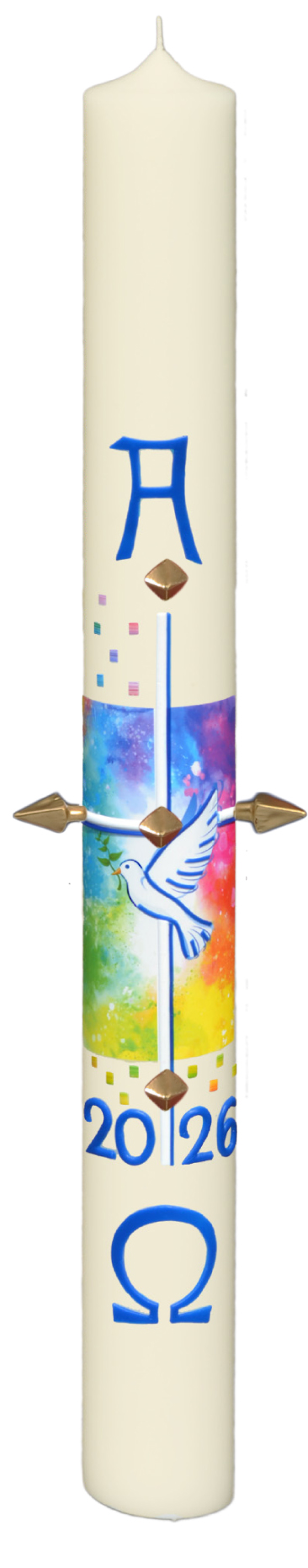 Osterkerze 10 % BW. - Dekor 3539 Friedenstaube auf himmlichen Hintergrund